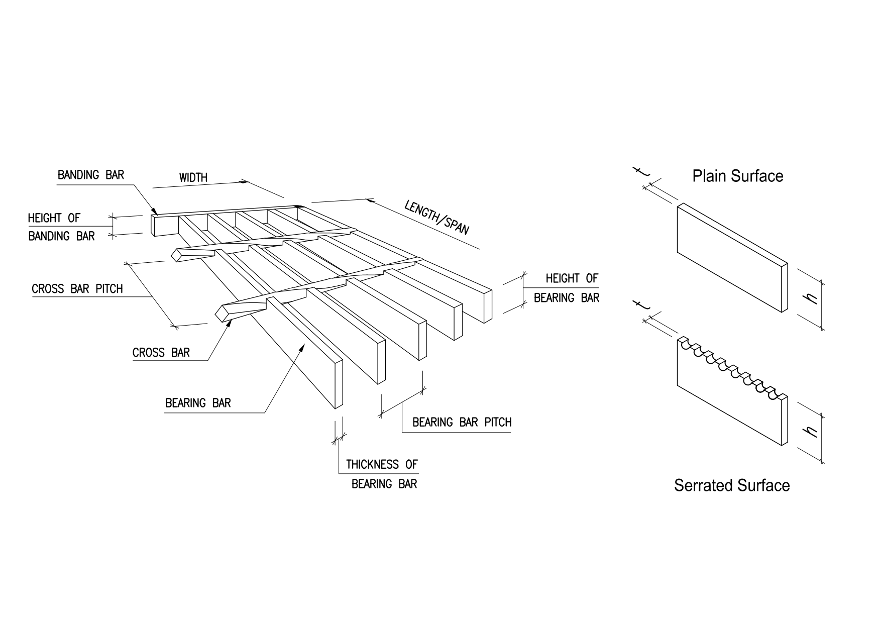 - Plain or Serrated bearing bars (Serrated for enhanced traction)